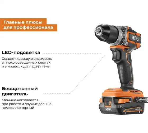Бесщеточная аккумуляторная дрель-шуруповерт AEG BS18SBL-202C 4935472277