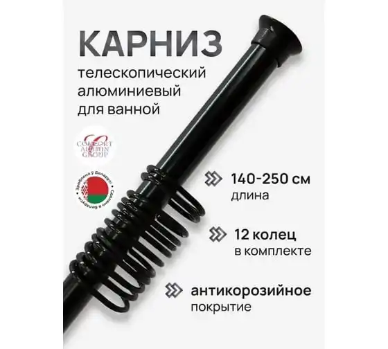 Раздвижной карниз Comfort Alumin Group алюминиевый, 2,5м, черный в транспортировочной упаковке 004724