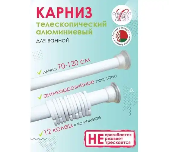 Раздвижной карниз Comfort Alumin Group алюминиевый 1,2 м белый в транспортировочной упаковке 004716