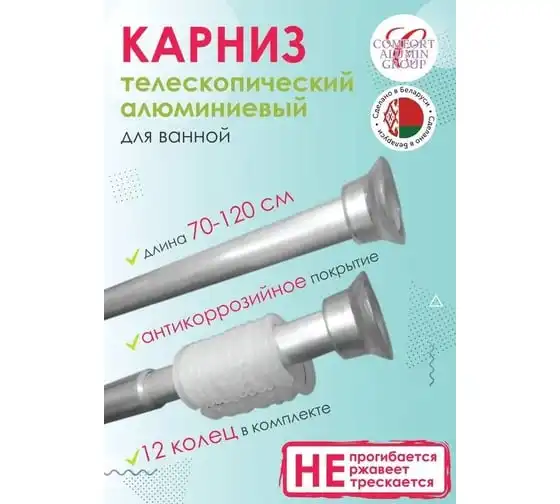 Раздвижной карниз Comfort Alumin Group алюминиевый 1,2 м серебристый в транспортировочной упаковке 004717
