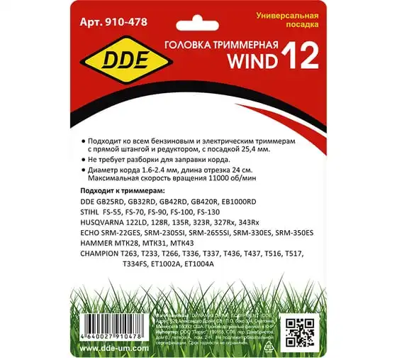 Головка триммерная Wind 12 (1.6-2.4 мм; под гайку) DDE 910-478