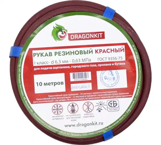 Рукав газовый 6.3 мм, красный, 1 класс, 10 м DRAGONKIT 00-00002679