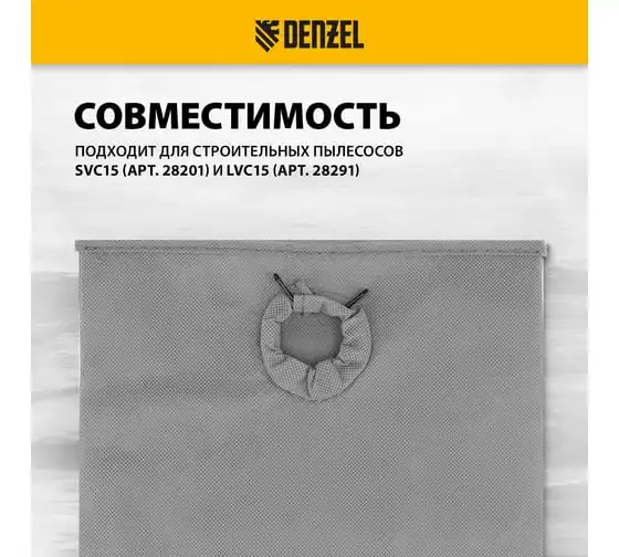 Мешок тканевый многоразовый для пылесоса SVC15, LVC15 Denzel 28212