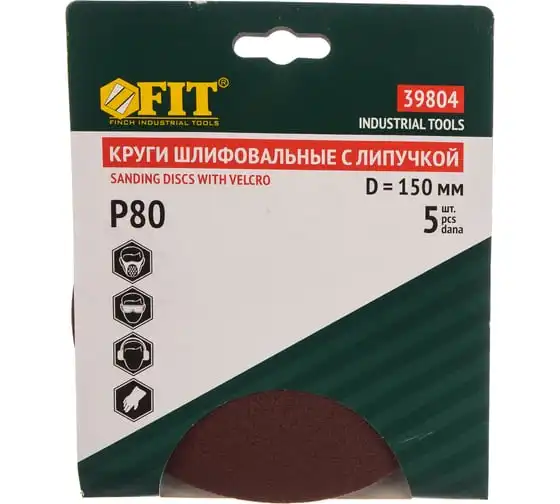 Круг шлифовальный (5 шт; 150 мм; Р80) для шлифовальных станков Fit 39804