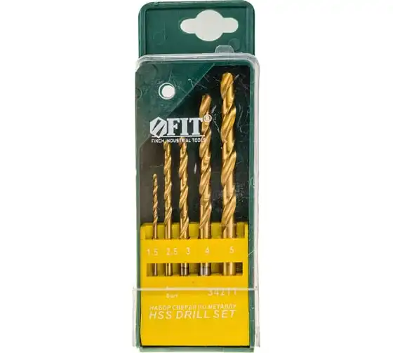 Сверла по металлу HSS, титановое покрытие, 5 шт. FIT IT 34211