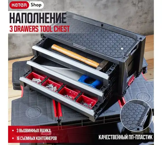Ящик для инструментов Keter 3 DRAWERS TOOL CHEST SYSTEM блок из 3 секций 237791