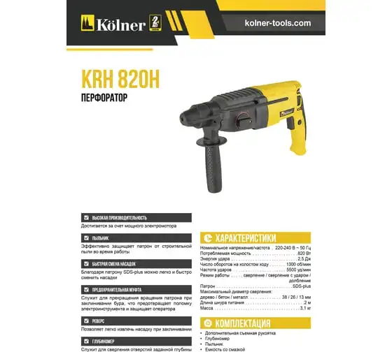 Перфоратор Kolner KRH 820H 8030300236