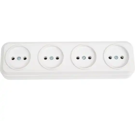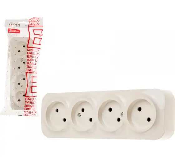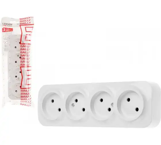 Розетка LEIDEN ELECTRIC 4-ая (открытая, б/з) белая, Bailly, 806010