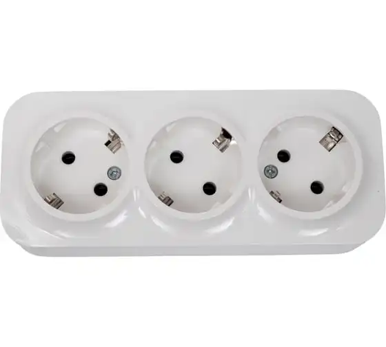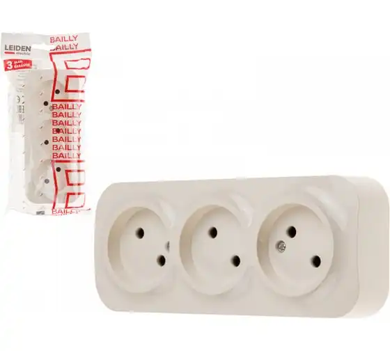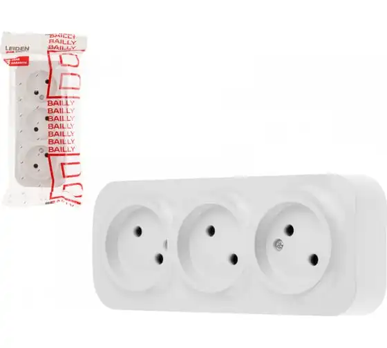 Розетка LEIDEN ELECTRIC 3-ая (открытая, б/з) белая, Bailly, 806008