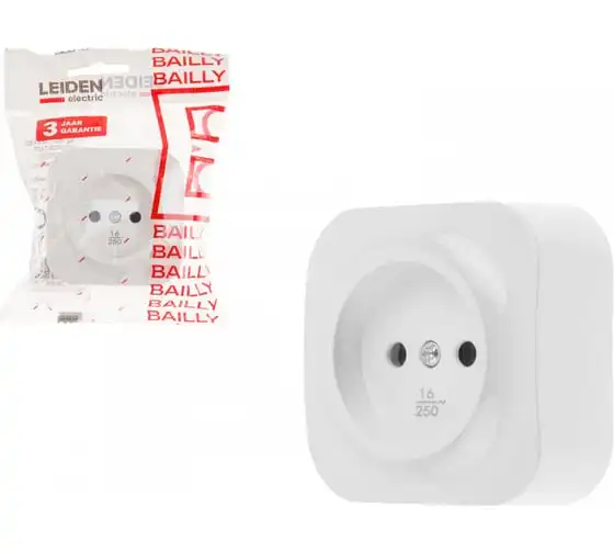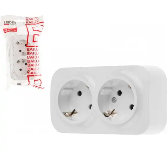 Розетка LEIDEN ELECTRIC 2-ая (открытая, с/з) белая, Bailly, 806005