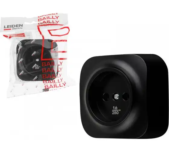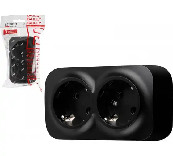 Розетка LEIDEN ELECTRIC 2-ая (открытая, с/з) черная, Bailly, 806015