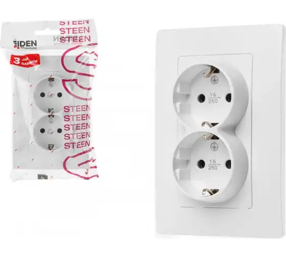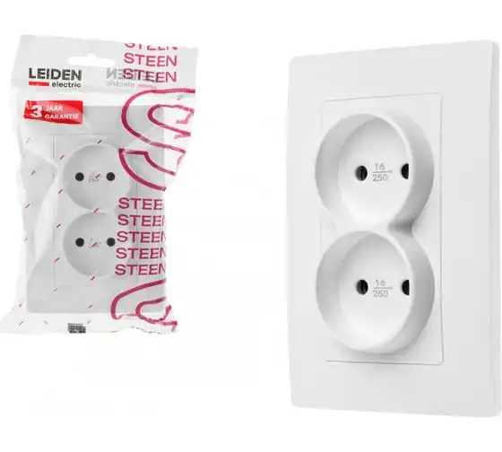 Розетка LEIDEN ELECTRIC 2-ая (скрытая, б/з) белая, Steen, 806037