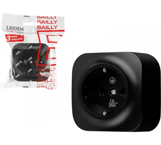 Розетка LEIDEN ELECTRIC 1-ая (открытая, с/з) черная, Bailly, 806014