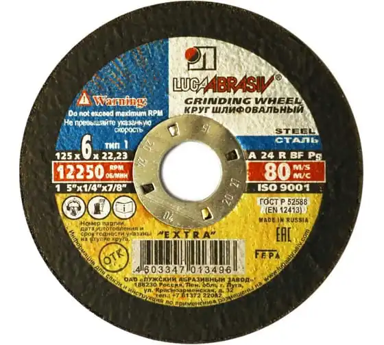 Круг зачистной по металлу (125х6х22 мм; A 24 R BF 14А БУ 80) Luga-Abrasiv 4603347013496
