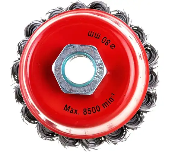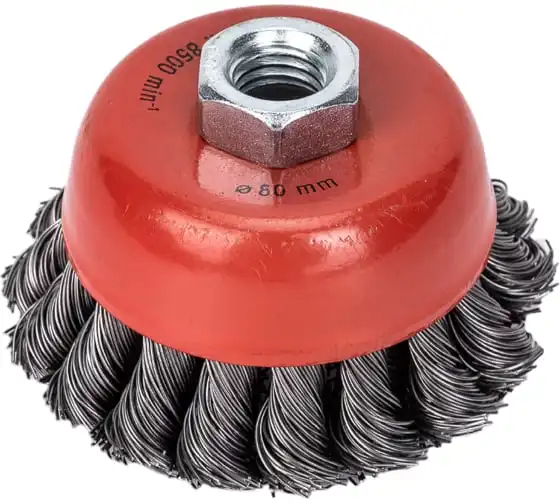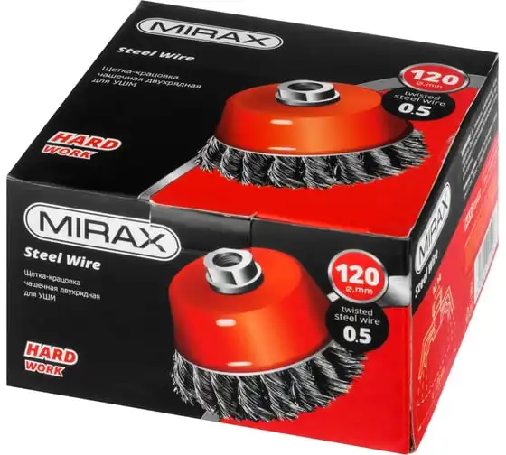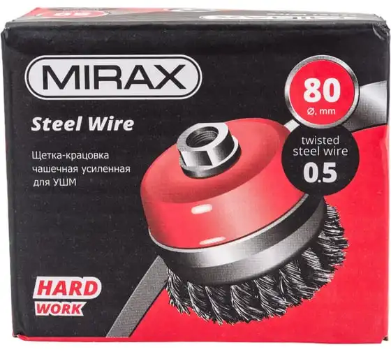 Щетка чашечная усиленная для УШМ (жгутированная стальная проволока 0,5 мм, 80 мм) MIRAX 35144-080