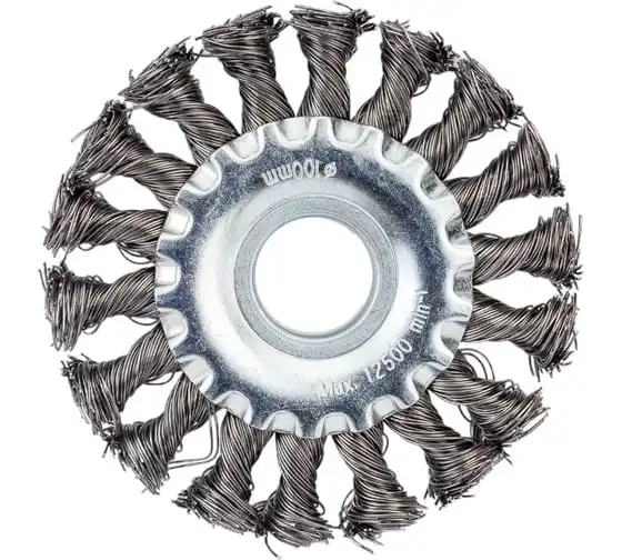 Щетка дисковая для УШМ (жгутированная стальная проволока 0,5 мм, 100 мм) MIRAX 35140-100