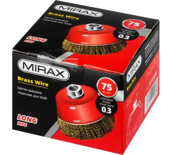 Щетка чашечная для УШМ (латунированная проволока 0,3 мм, 75 мм) MIRAX 35142-075