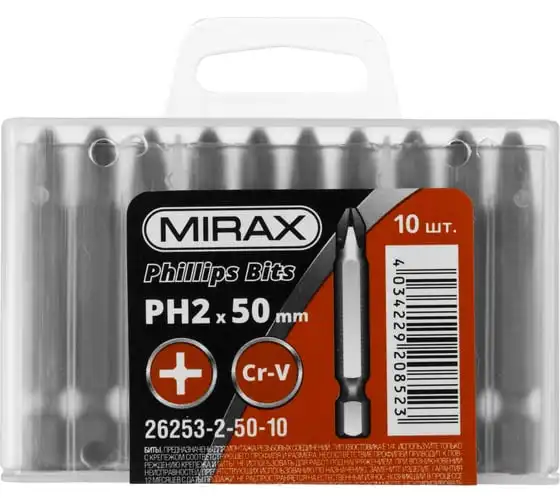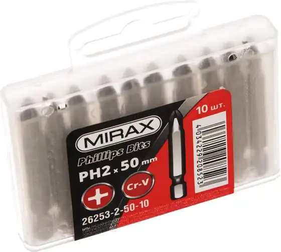 Биты PH№2, тип хвостовика E 1/4", длина 50мм, 10шт MIRAX 26253-2-50-10