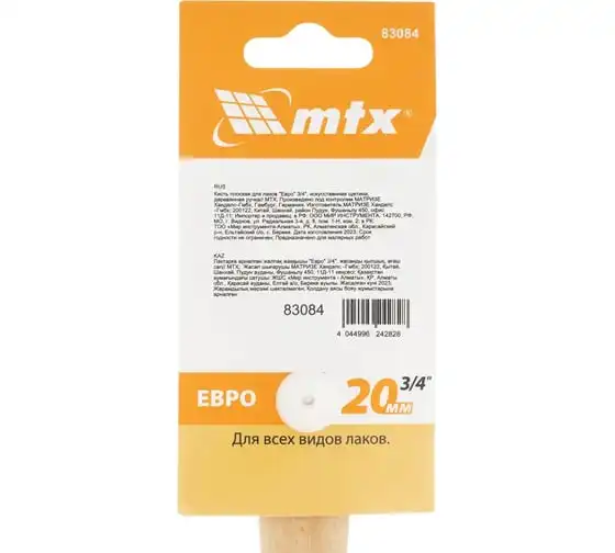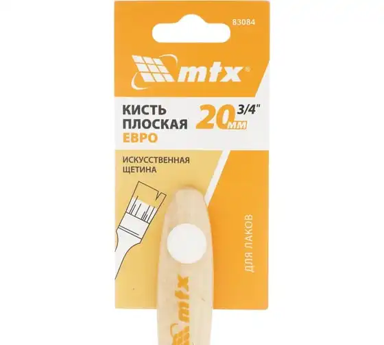 Кисть плоская для лаков MTX евро, 3/4", искусственная щетина, деревянная ручка 83084