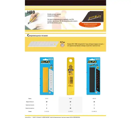 Лезвие сегментированное OLFA Excel Black 20 шт, 25 мм в пластиковом кейсе OL-HBB-20