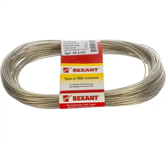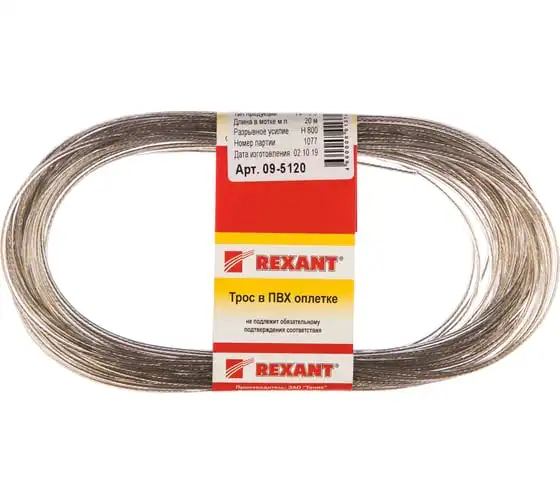 Трос стальной REXANT в ПВХ оплетке d=2.0 мм, моток 20 метров 09-5120
