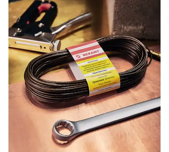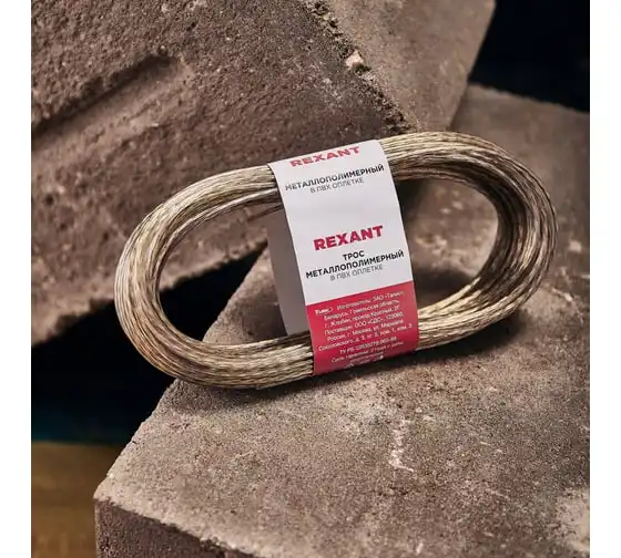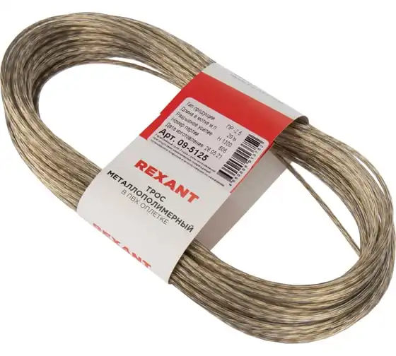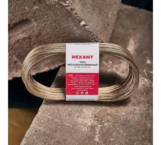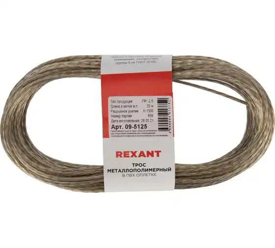 Трос стальной REXANT в ПВХ изоляции d=2.5 мм, моток 20 м 09-5125