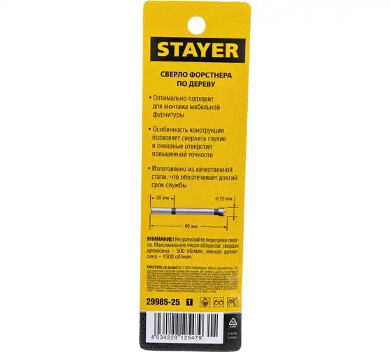 Сверло Форстнера STAYER Forstner по дереву 25 мм 29985-25_z01