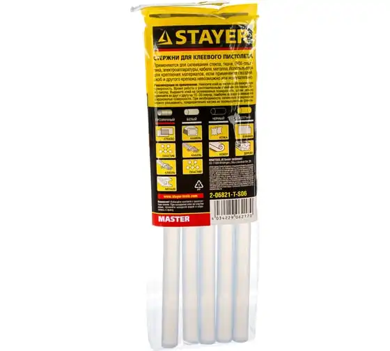Стержень 6 шт. (200х11 мм; прозрачный) по пластику/стеклу для клеевого пистолета STAYER 2-06821-T-S06