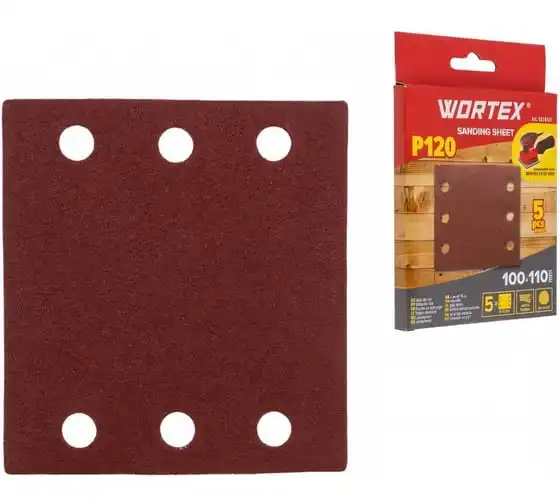 Шлифлист для дерева 100x110 мм, Р120, самосцепляющийся, 6 отверстий, 5 шт WORTEX 1334431