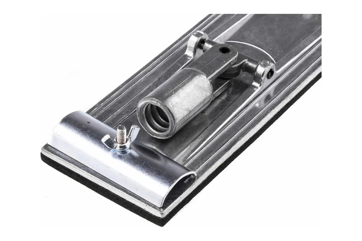 Брусок для шлифования Matrix 75838, 230 х 80 мм предназначен для абразивной обработки поверхностей с помощью зафиксированного шлифлиста или сетки любой зернистости. Он используется для подготовки потолков, стен, различных материалов к отделочным работам. Благодаря возможности установки на шарнирный переходник раздвижной ручки брусок особенно удобен при шлифовке поверхностей, расположенных на высоте.