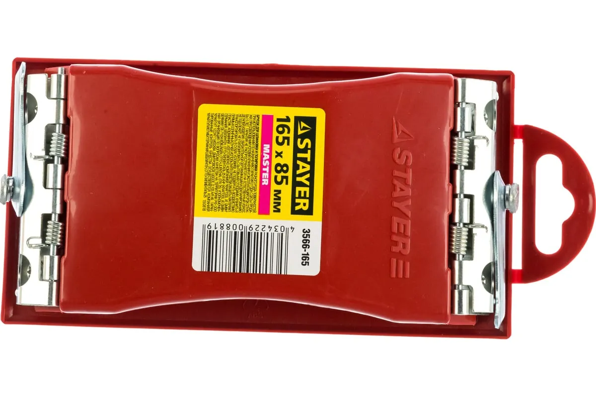 Брусок для шлифования STAYER 165x85мм 3566-165 предназначен для шлифовки и полировки различных поверхностей. Выполнен из ударопрочной пластмассы. Брусок имеет металлический зажим надежно фиксирует бумагу или абразивную сетку.