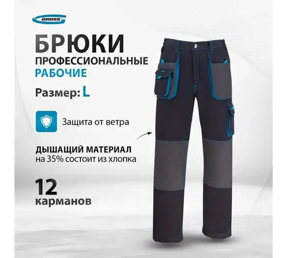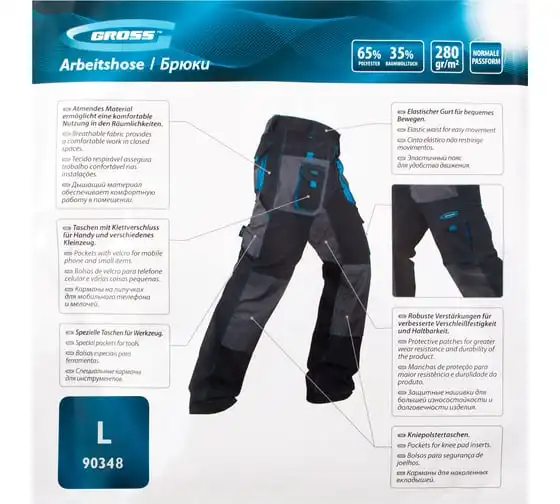 Брюки GROSS размер L 90348 предназначены для использования в теплое время года, либо в обогреваемом помещении. Отлично подходят для профессионалов.