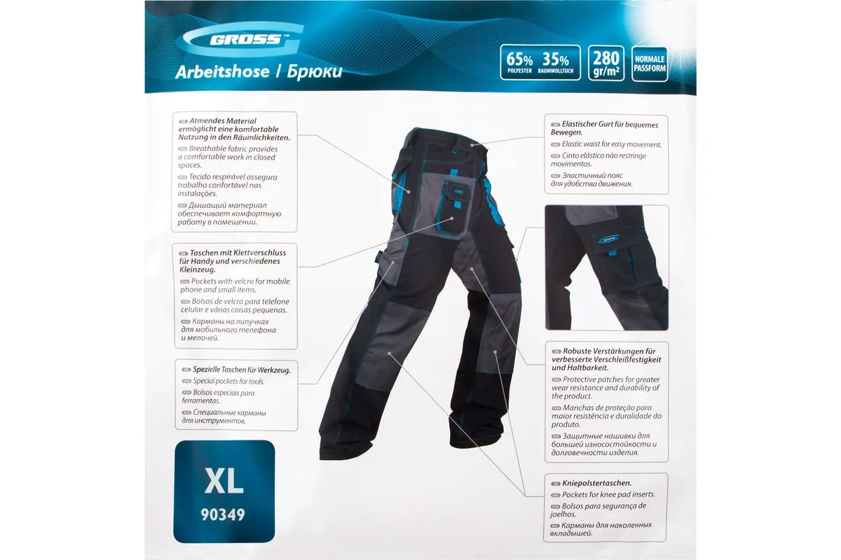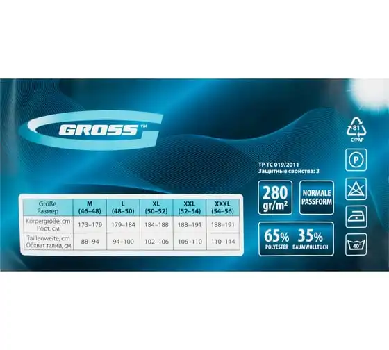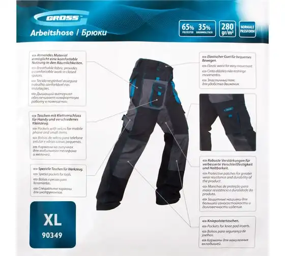 Брюки GROSS размер XL 90349 предназначены для использования в теплое время года, либо в обогреваемом помещении. Отлично подходят для профессионалов.