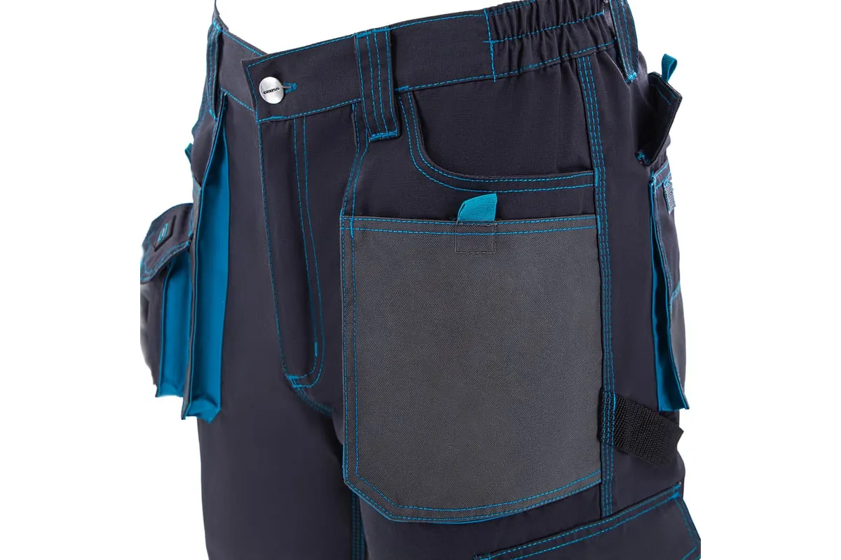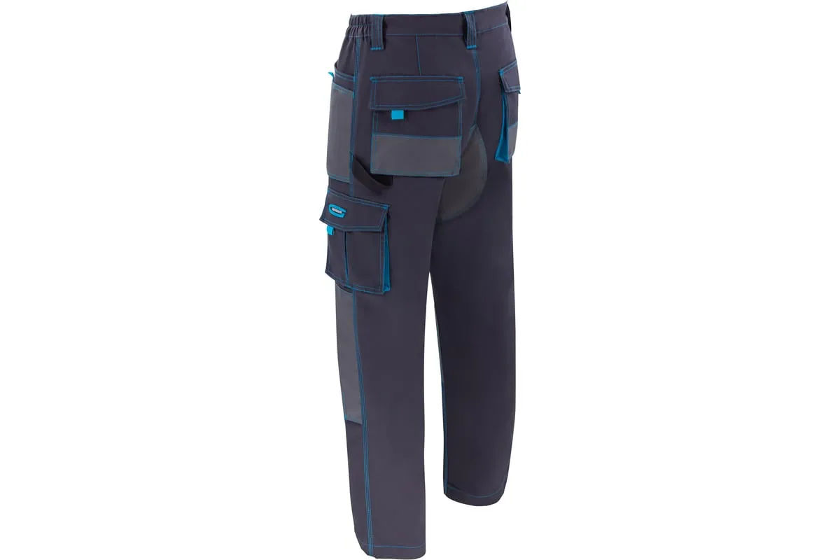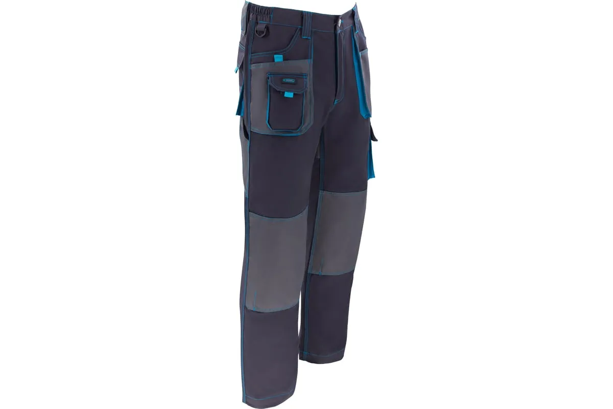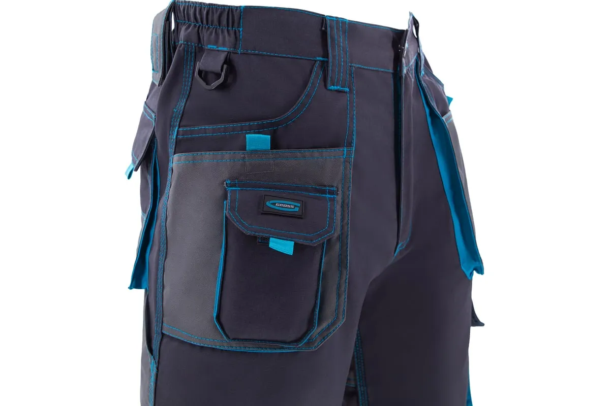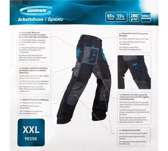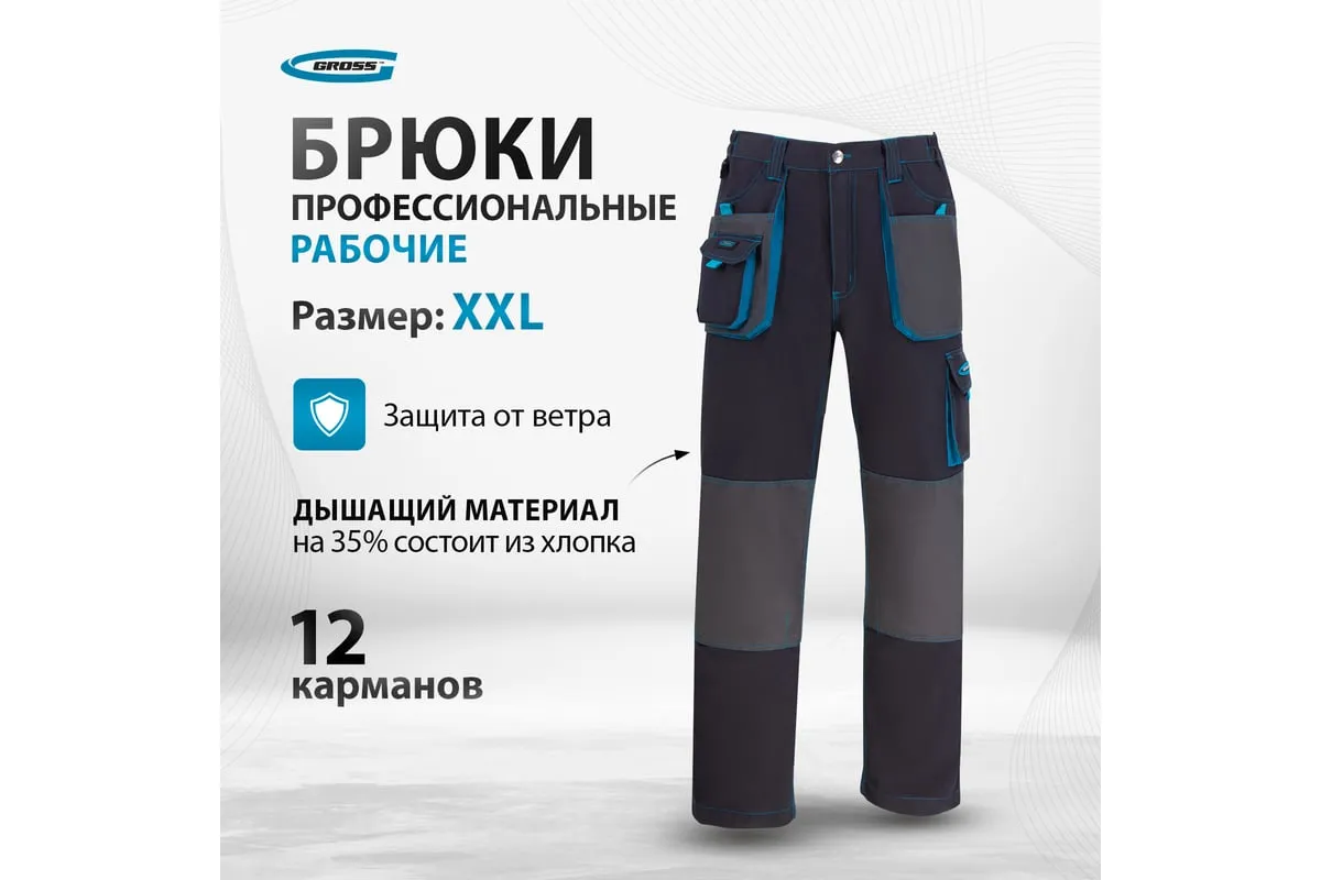 Универсальные брюки Gross 90350 размера XXL подойдут для выполнения различных видов работ в теплое время года или в отапливаемом помещении. Они надежно защищают мастера от грязи, мелких повреждений и ссадин. В брюках предусмотрены защитные нашивки и 12 карманов для удобства работы.