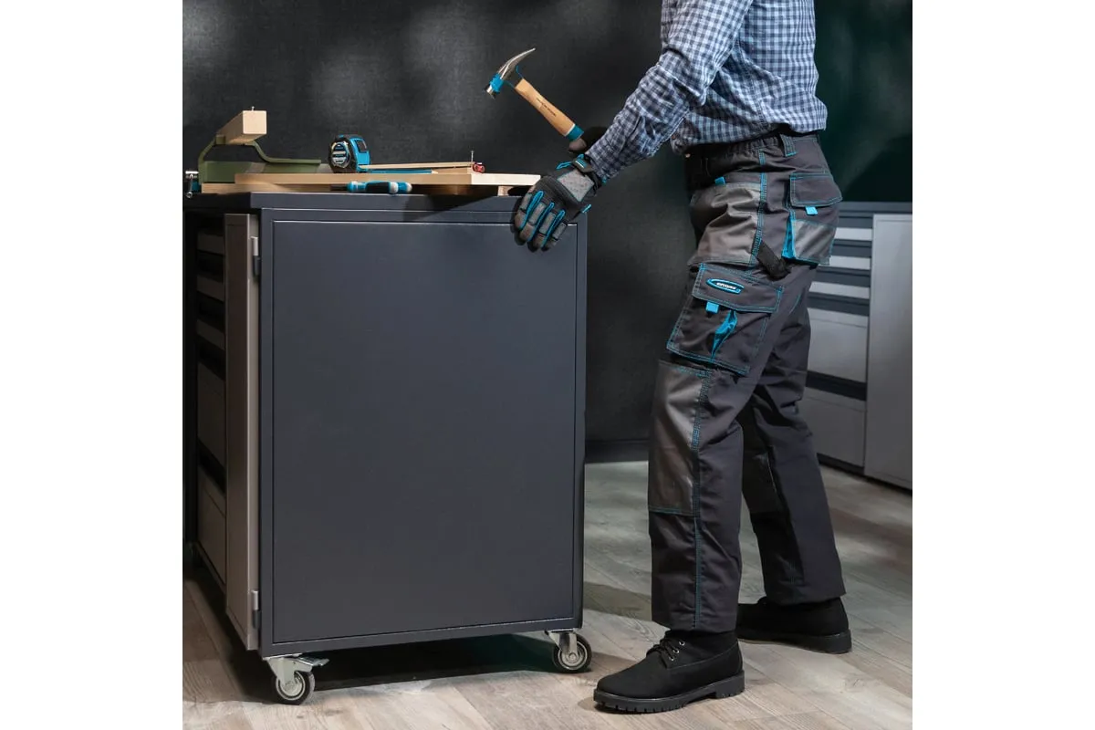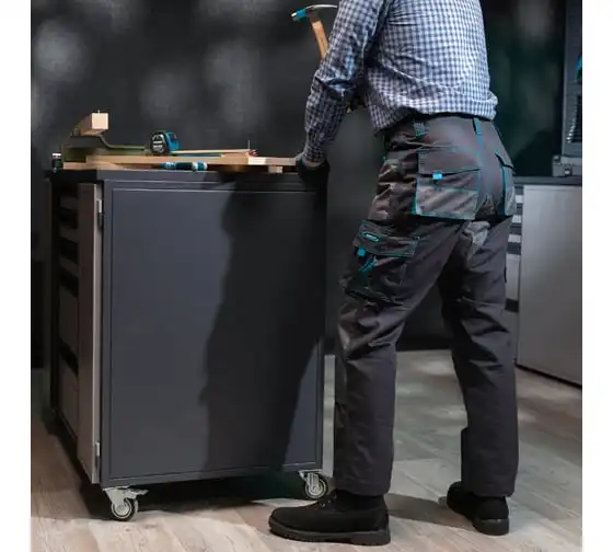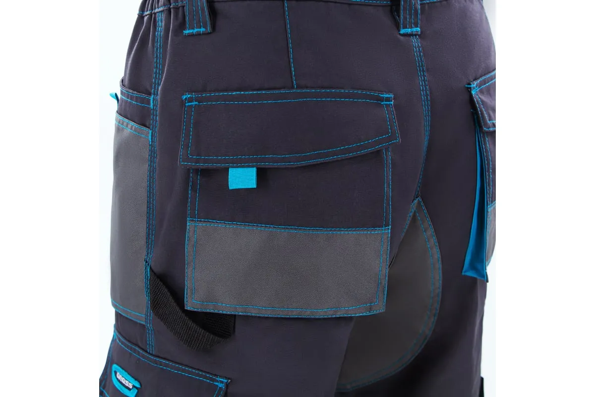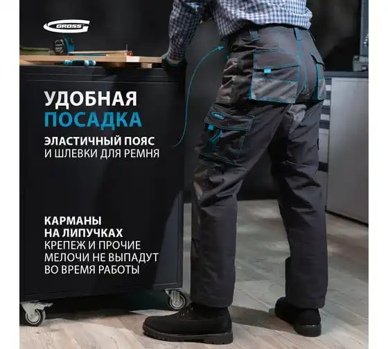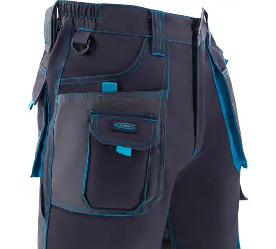 Универсальные брюки Gross 90351 размера XXXL подойдут для выполнения различных видов работ в теплое время года или в отапливаемом помещении. Они надежно защищают мастера от грязи, мелких повреждений и ссадин. В брюках предусмотрены защитные нашивки и 12 карманов для удобства работы.
