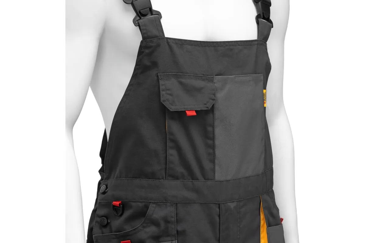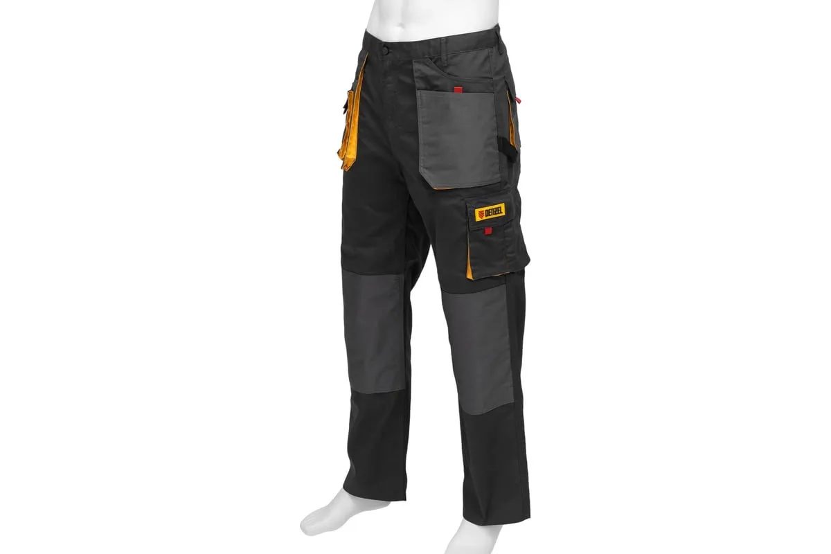 Рабочие брюки используются для выполнения профессиональных строительных, ремонтных, сантехнических и производственных работ в теплое время года или в отапливаемом помещении. Защищают пользователя от общих производственных загрязнений, нетоксичной пыли, ветра и незначительных механических воздействий. Изготовлены из ткани плотностью 260 г/м2 (65% полиэстер, 35% хлопок). За счет наличия хлопковых волокон в составе ткань хорошо пропускает воздух и приятна на теле, полиэстер обеспечивает устойчивость к истиранию. Брюки выполнены в практичном темно-сером цвете.