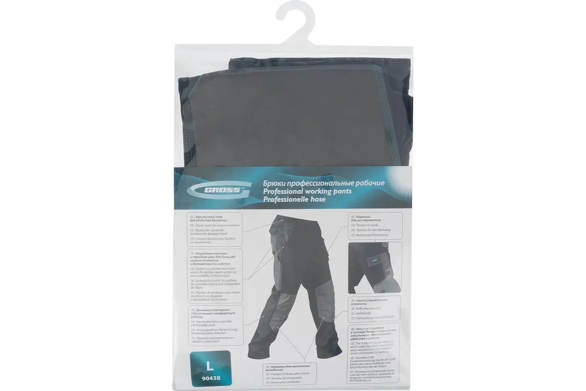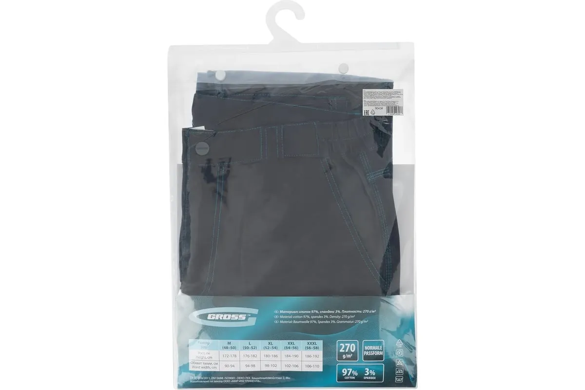 Профессиональные рабочие брюки Gross 90438 размера L рассчитаны на рост 176-182 см и защищают пользователя от общих производственных загрязнений, нетоксичной пыли, ветра и незначительных механических воздействий. Подойдут для выполнения различных видов работ в теплое время года или в отапливаемом помещении. Выполнены в практичном темно-сером цвете. Изготовлены из ткани с 97-процентным содержанием хлопка и 3-процентным содержанием спандекса. За счет наличия хлопковых волокон в составе ткань прекрасно пропускает воздух и приятна на теле, а спандекс делает ее более эластичной, поэтому в брюках удобно работать.