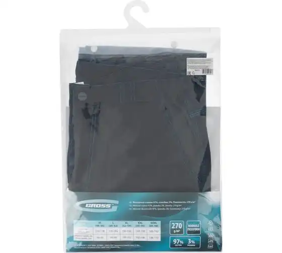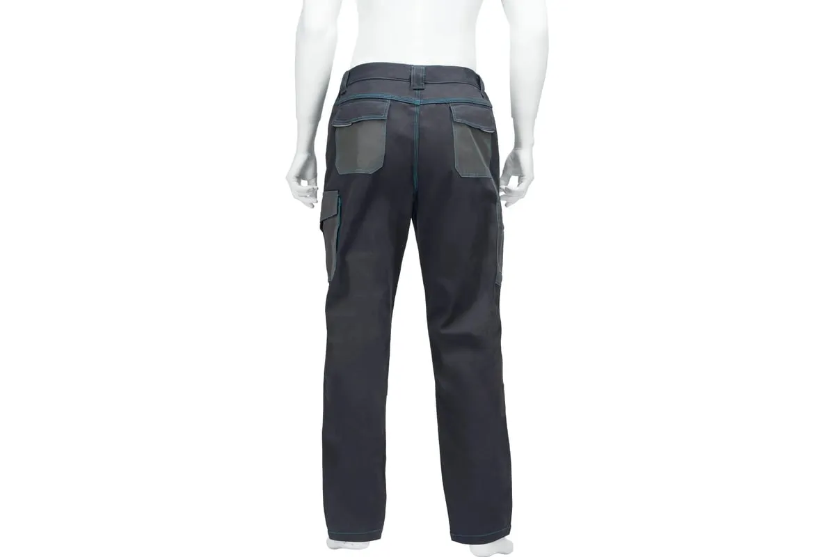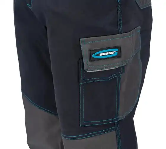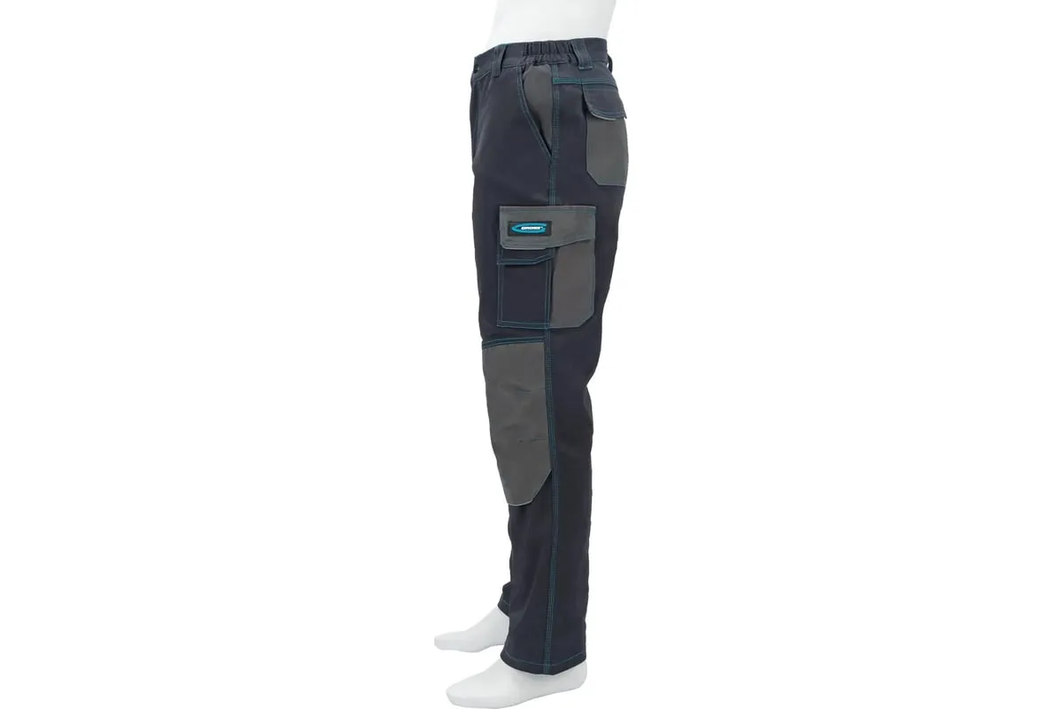 Профессиональные рабочие брюки Gross 90439 размера XL рассчитаны на рост 180-186 см и защищают пользователя от общих производственных загрязнений, нетоксичной пыли, ветра и незначительных механических воздействий. Подойдут для выполнения различных видов работ в теплое время года или в отапливаемом помещении. Выполнены в практичном темно-сером цвете. Изготовлены из ткани с 97-процентным содержанием хлопка и 3-процентным содержанием спандекса. За счет наличия хлопковых волокон в составе ткань прекрасно пропускает воздух и приятна на теле, а спандекс делает ее более эластичной, поэтому в брюках удобно работать.