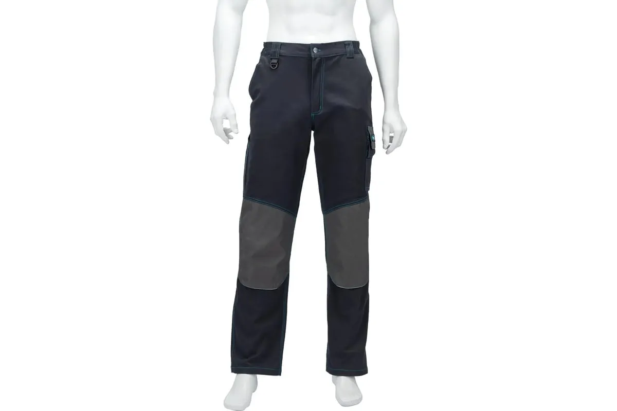 Профессиональные рабочие брюки Gross 90440 размера XXL рассчитаны на рост 184-190 см и защищают пользователя от общих производственных загрязнений, нетоксичной пыли, ветра и незначительных механических воздействий. Подойдут для выполнения различных видов работ в теплое время года или в отапливаемом помещении. Выполнены в практичном темно-сером цвете. Изготовлены из ткани с 97-процентным содержанием хлопка и 3-процентным содержанием спандекса. За счет наличия хлопковых волокон в составе ткань прекрасно пропускает воздух и приятна на теле, а спандекс делает ее более эластичной, поэтому в брюках удобно работать.