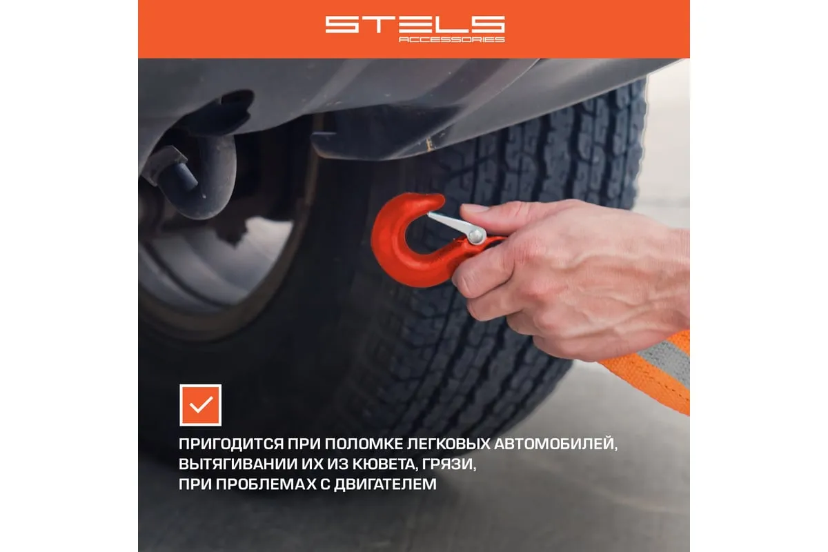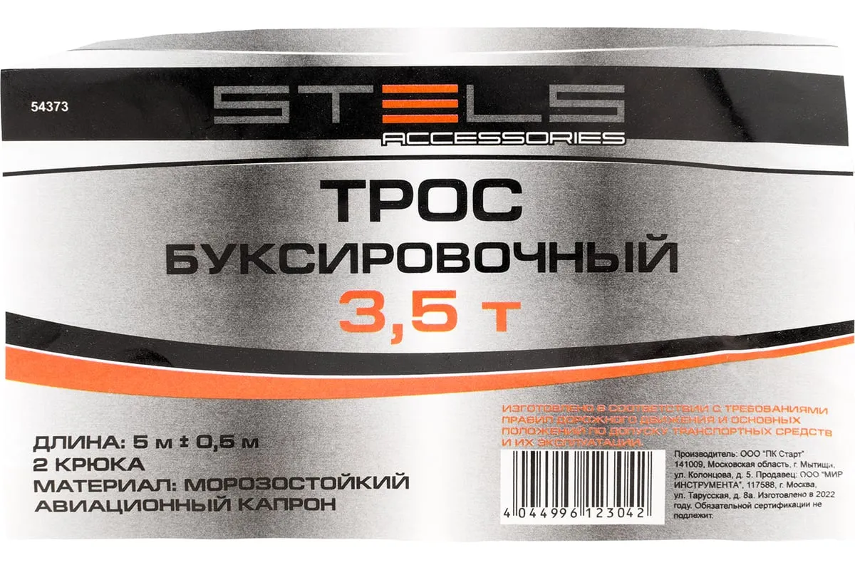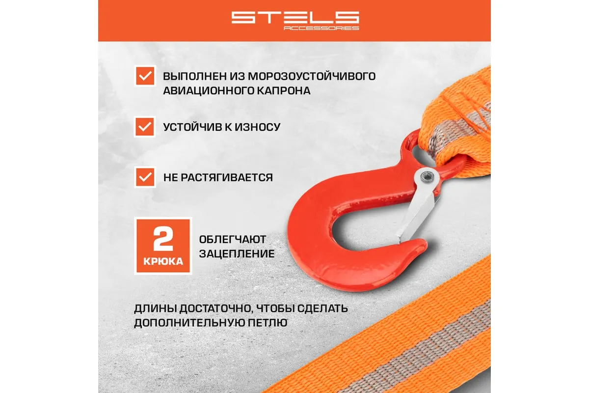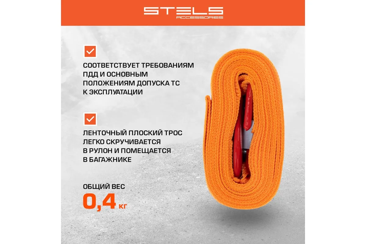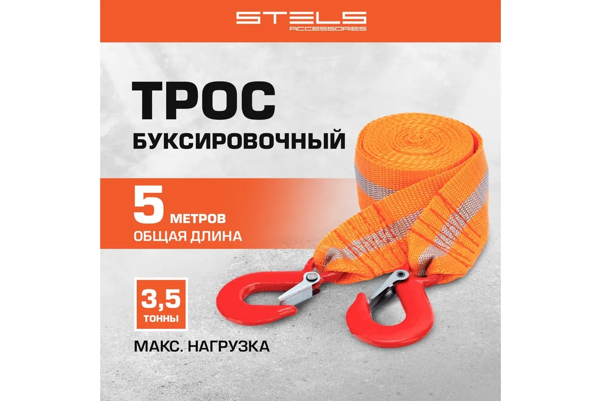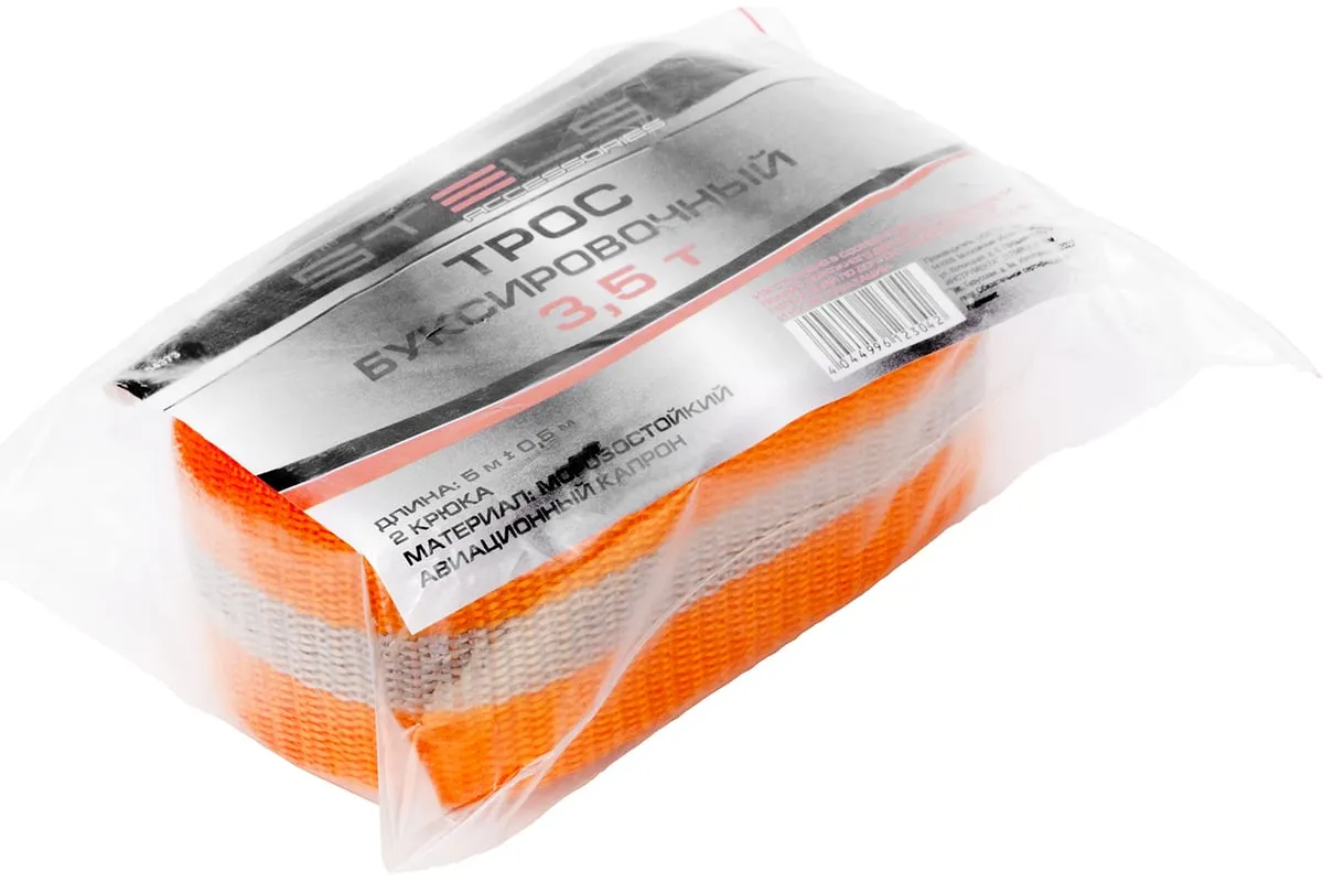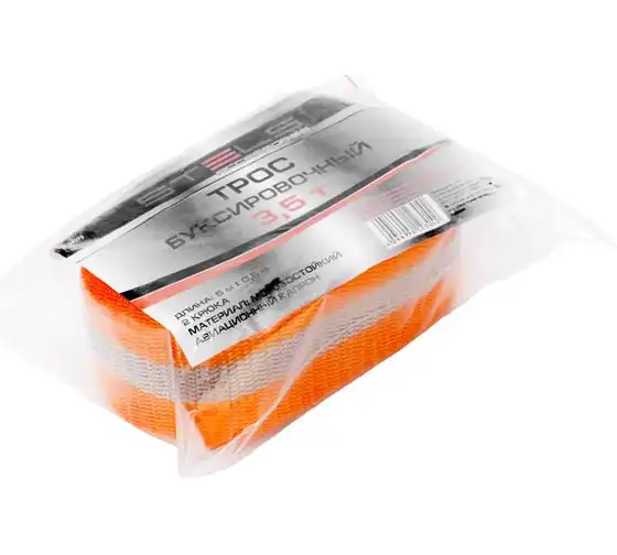 Буксировочный трос 3,5 тонны STELS 54373 не изменяет свои линейные размеры на протяжении всего срока службы. Используется для буксировки транспортных средств. Выполнен из авиационного капрона, который является морозоустойчивым и особо прочным материалом, в соответствии с требованиями правил дорожного движения. Длина 5 м.