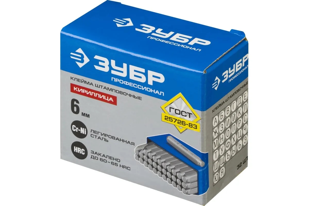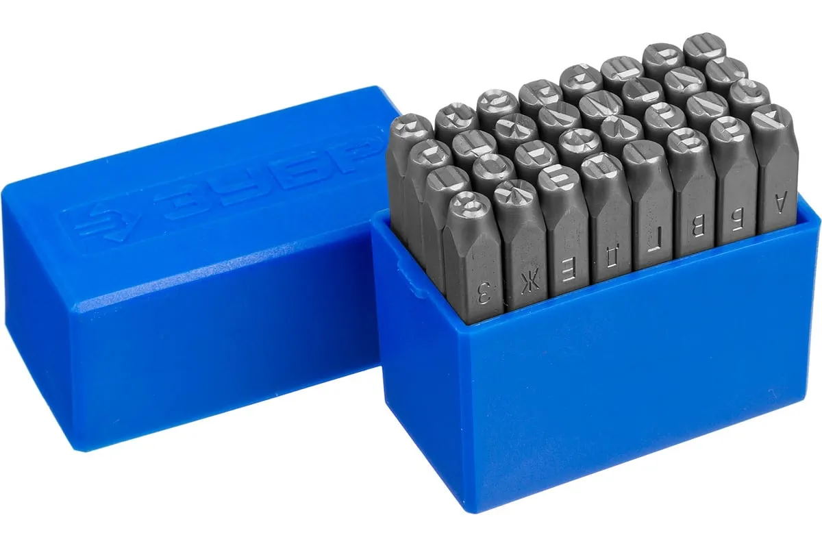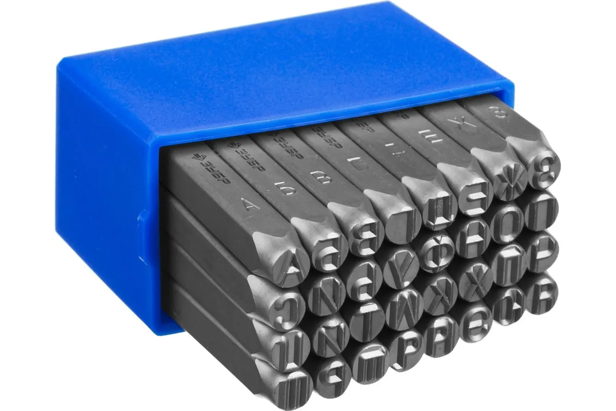 Буквенные клейма Зубр, шрифт 6 мм 21503-06_z01 предназначены для использования в промышленной сфере, а также в профессиональных и личных мастерских. С их помощью на различные поверхности наносятся штампы в виде буквенных символов. Клейма изготовлены из легированной хромом инструментальной стали и имеют никелированное покрытие, что обеспечивает прочность и долгий срок службы. Они закалены до твердости 60-65 HRC.
