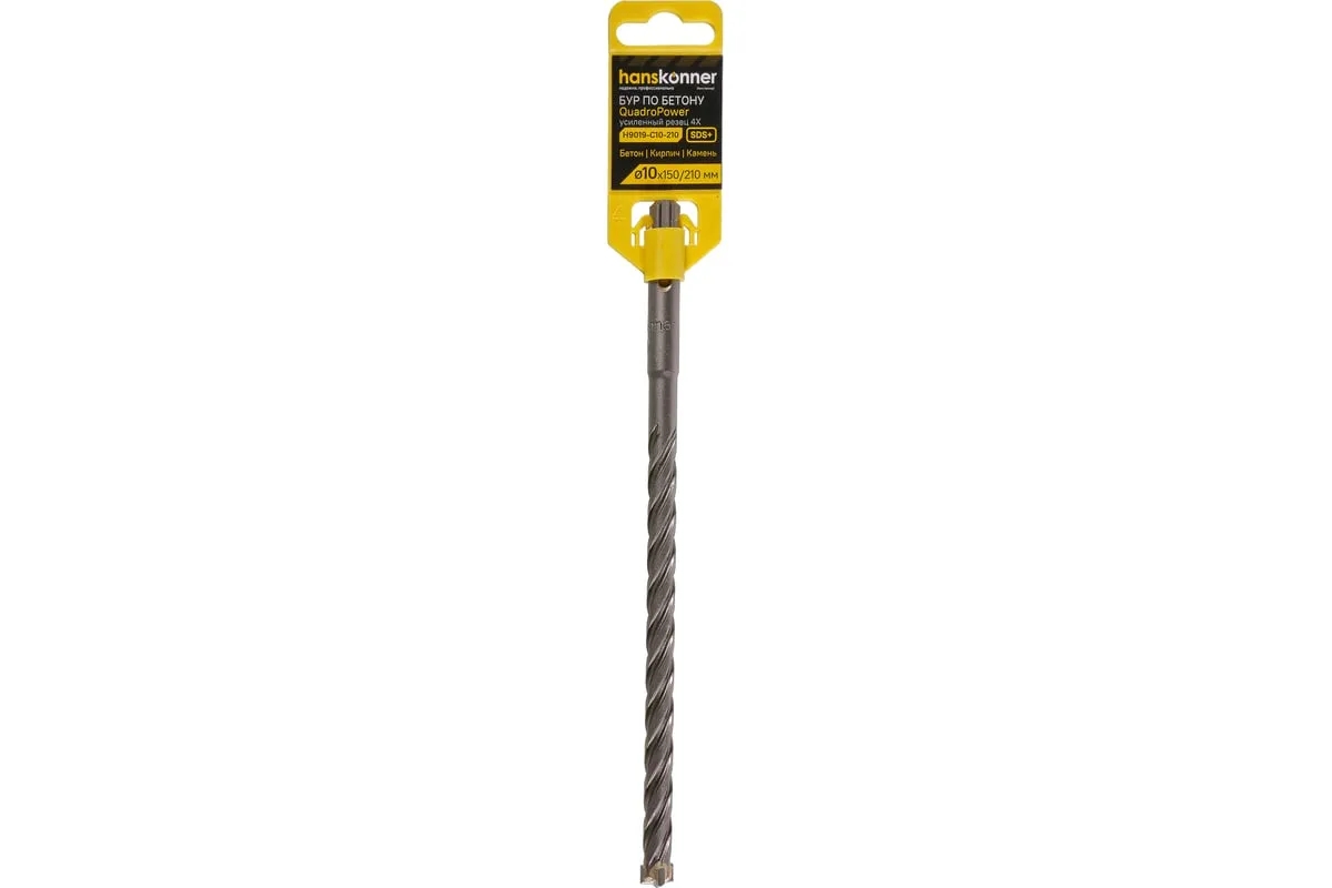 Бур SDS+ Hanskonner является оснасткой для перфораторов и используется для ударного сверления отверстий в твердых материалах, таких как бетон, камень, кирпич. Специальная форма спирали способствует эффективному удалению сверлильной пыли из отверстия и уменьшает нагрев бура во время работы. Наконечник оснащен пластиной из твердого сплава, что гарантирует высокую прочность, износостойкость и длительный срок эксплуатации оснастки. Предназначен для перфораторов с системой крепления SDS-plus.