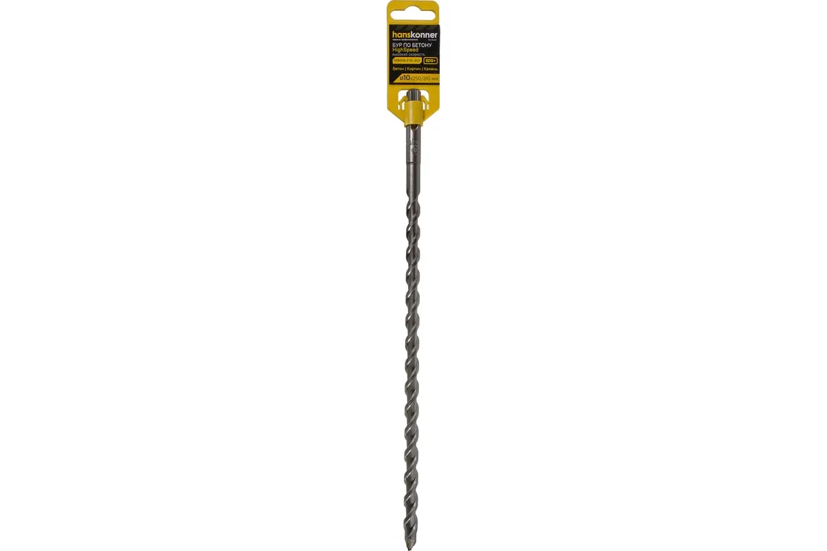 Бур SDS+ Hanskonner является оснасткой для перфораторов и используется для ударного сверления отверстий в твердых материалах, таких как бетон, камень, кирпич. Специальная форма спирали способствует эффективному удалению сверлильной пыли из отверстия и уменьшает нагрев бура во время работы. Наконечник оснащен пластиной из твердого сплава, что гарантирует высокую прочность, износостойкость и длительный срок эксплуатации оснастки. Предназначен для перфораторов с системой крепления SDS-plus.