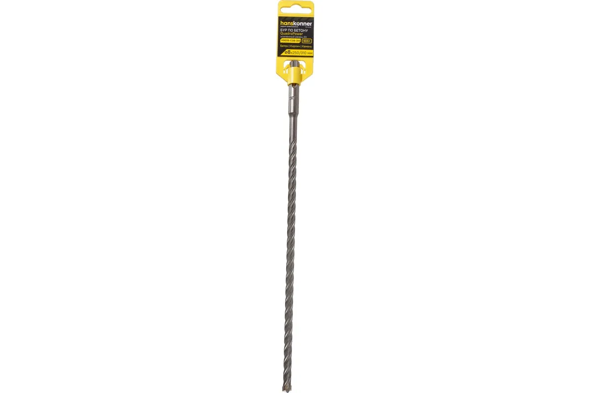 Бур SDS+ Hanskonner является оснасткой для перфораторов и используется для ударного сверления отверстий в твердых материалах, таких как бетон, камень, кирпич. Специальная форма спирали способствует эффективному удалению сверлильной пыли из отверстия и уменьшает нагрев бура во время работы. Наконечник оснащен пластиной из твердого сплава, что гарантирует высокую прочность, износостойкость и длительный срок эксплуатации оснастки. Предназначен для перфораторов с системой крепления SDS-plus.