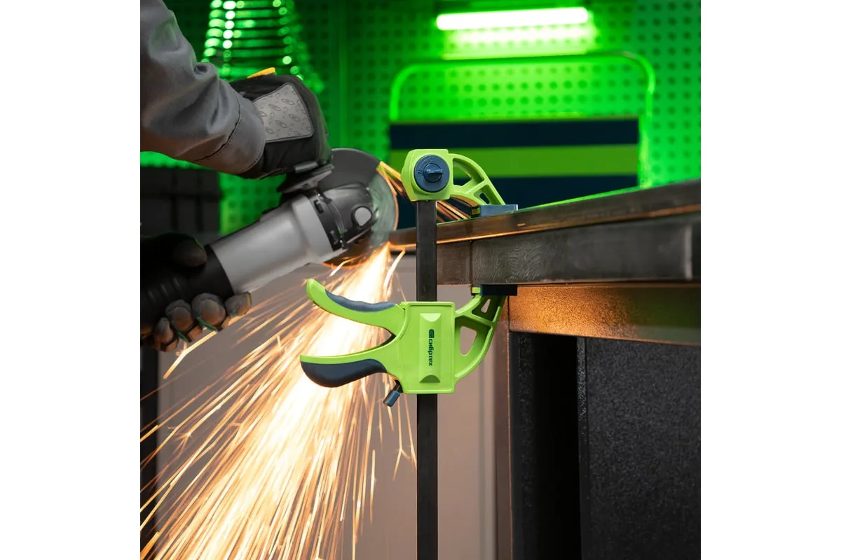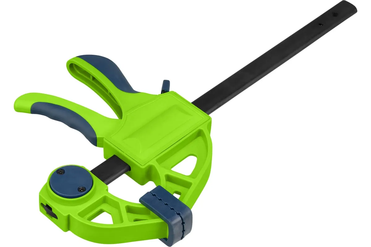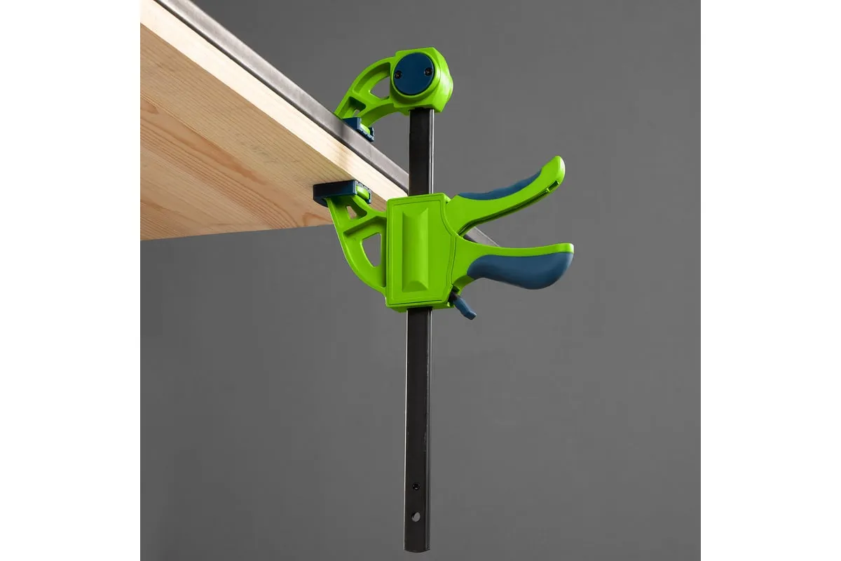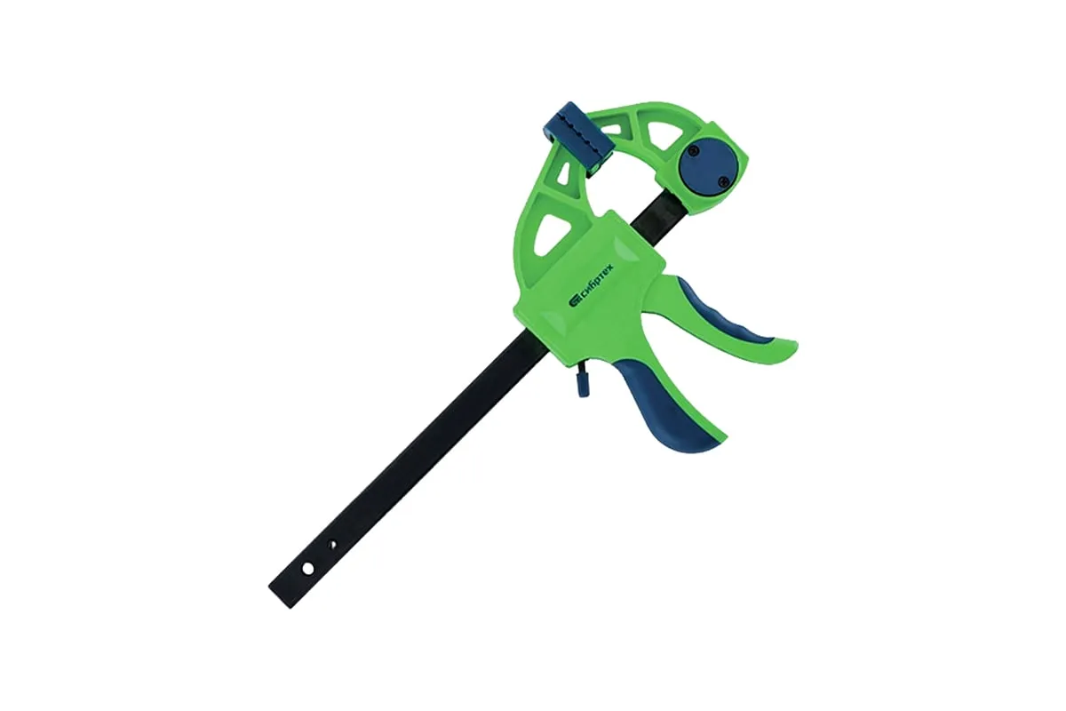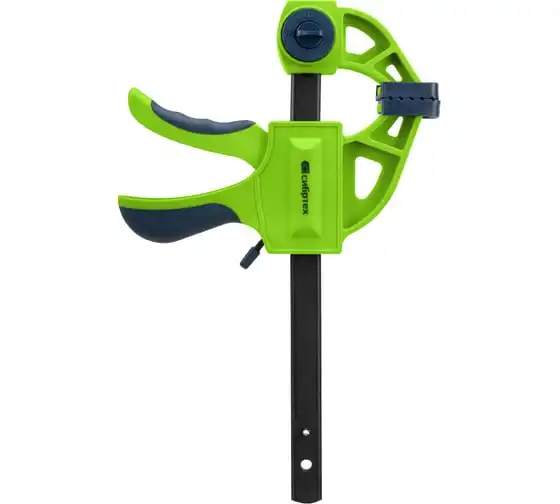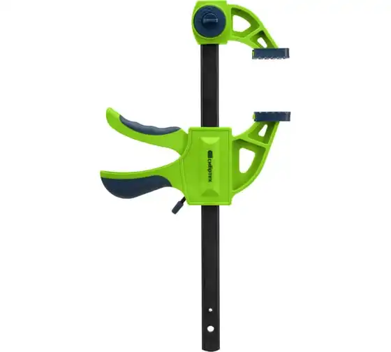 F-образная быстрозажимная струбцина Сибртех 20563 длиной 360 мм, с шириной и глубиной зажима 150 и 70 мм соответственно, в пластиковом корпусе, с фиксатором и двухкомпонентной рукояткой, позволяет зажимать заготовки для их дальнейшей обработки или сборки. Помогает решать множество задач благодаря оптимальной глубине зажима. Пластинчатый механизм пошагово перемещает подвижную губку вдоль направляющей до достижения максимально плотного захвата детали. Фиксатор препятствует движению губки в обратную сторону. Струбцина пригодится в столярной мастерской, а также будет полезна в быту.