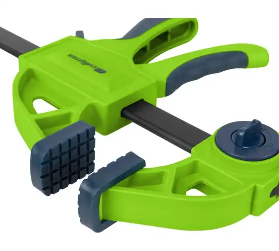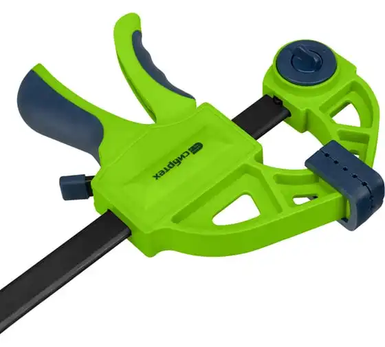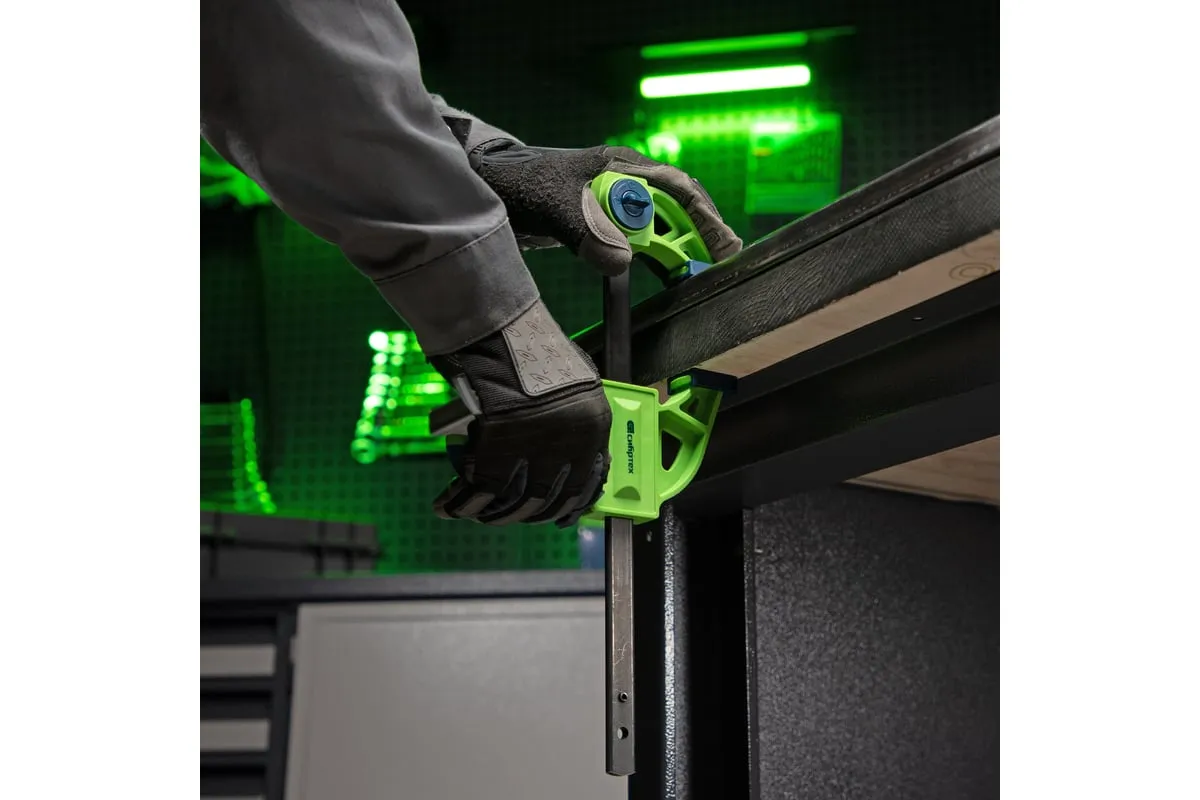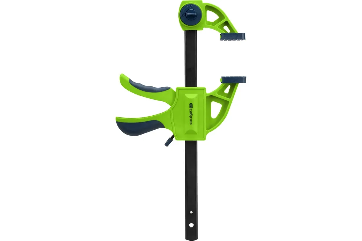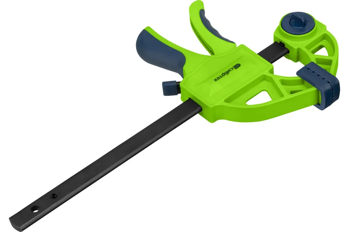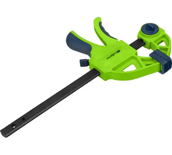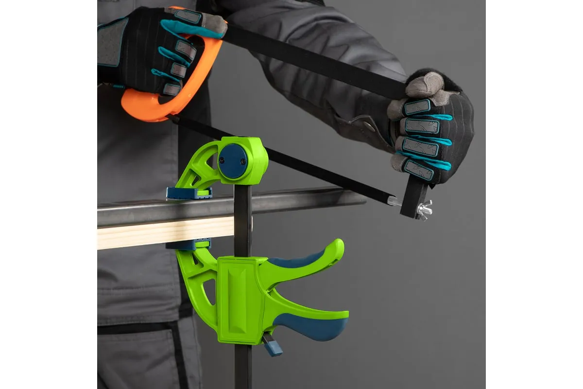 F-образная быстрозажимная струбцина Сибртех 20563 длиной 360 мм, с шириной и глубиной зажима 150 и 70 мм соответственно, в пластиковом корпусе, с фиксатором и двухкомпонентной рукояткой, позволяет зажимать заготовки для их дальнейшей обработки или сборки. Помогает решать множество задач благодаря оптимальной глубине зажима. Пластинчатый механизм пошагово перемещает подвижную губку вдоль направляющей до достижения максимально плотного захвата детали. Фиксатор препятствует движению губки в обратную сторону. Струбцина пригодится в столярной мастерской, а также будет полезна в быту.