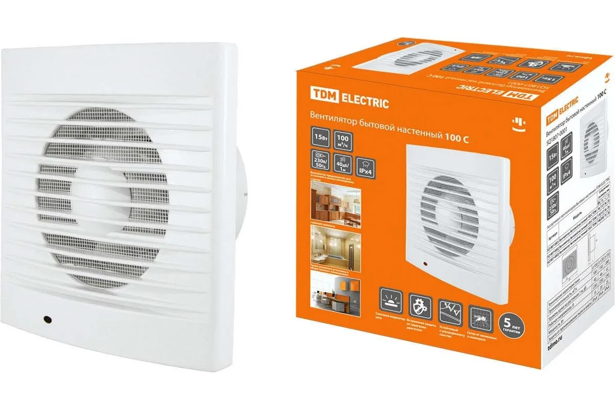Вентилятор бытовой настенный 100 С TDM от известного производителя TDM ЕLECTRIC предназначен для организации вытяжной вентиляции в бытовых и общественных помещениях. Он может быть установлен в вентиляционные шахты или соединен с воздуховодами для перемещения малой и средней величины потока воздуха на небольшие расстояния при малом сопротивлении вентиляционной системы.