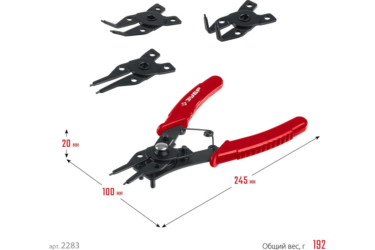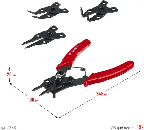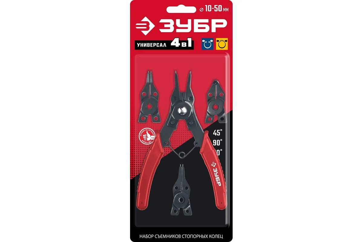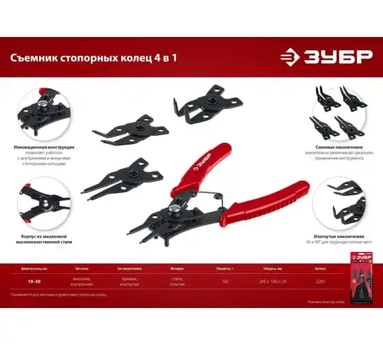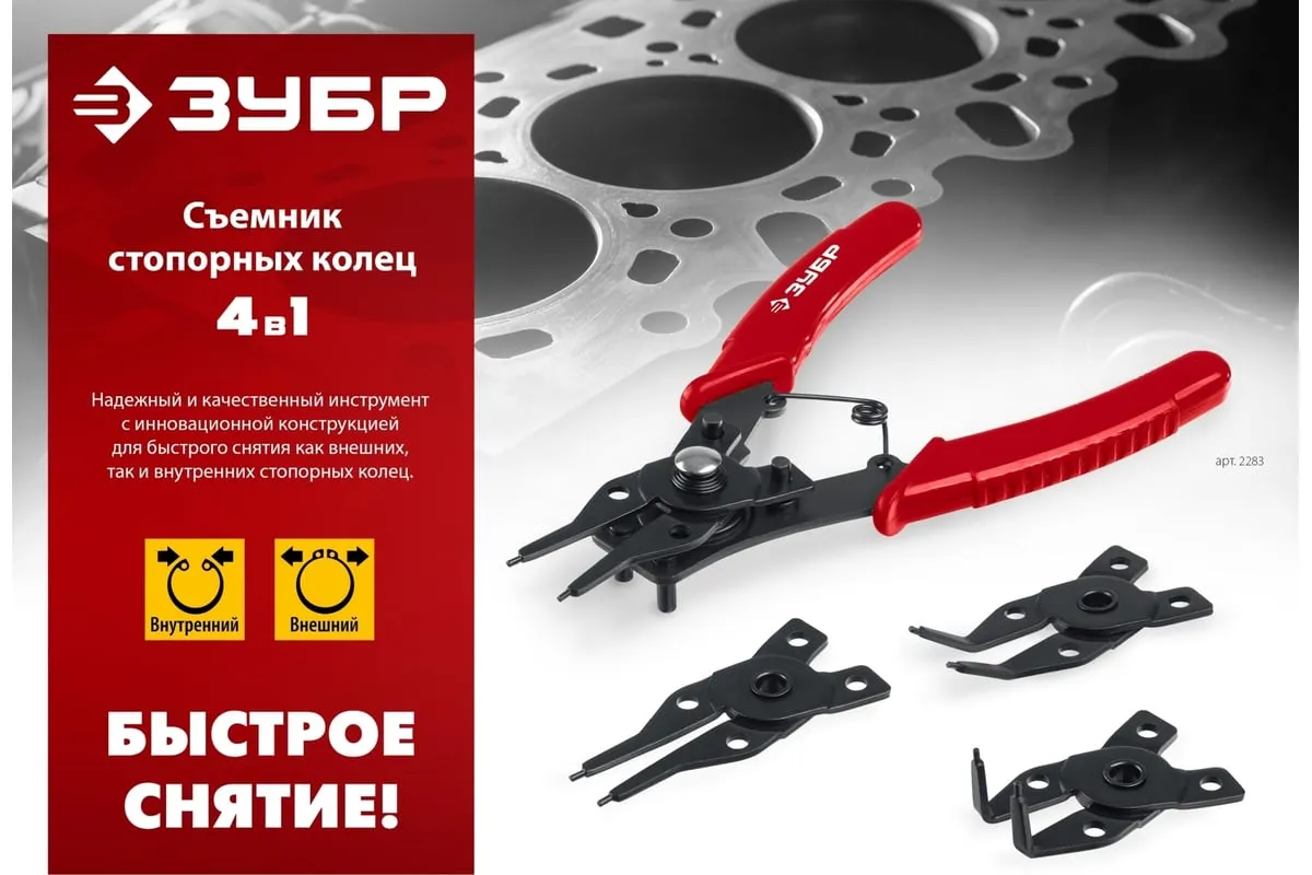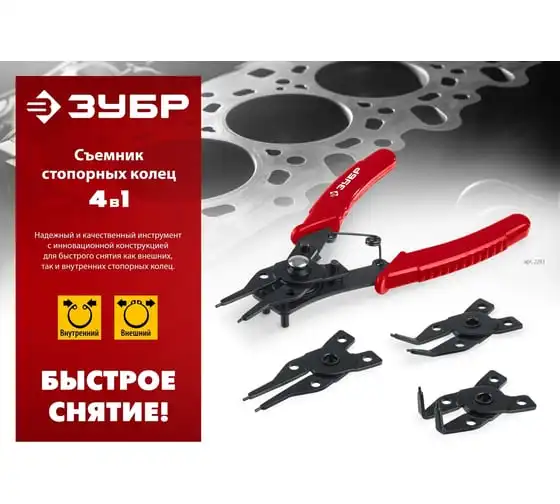 Cъемник стопорных колец 4-в-1 , 4 насадки ЗУБР 2283 - инструмент инновационной конструкции, для быстрого и комфортного выполнения работ.