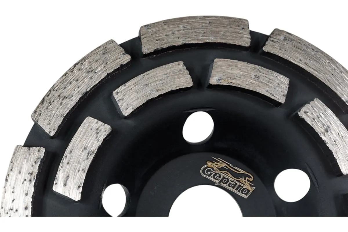 Чашка алмазная двухрядная по бетону 115 мм Gepard GP0808-115 применяется для интенсивной грубой зачистки выпуклых и неровных участков, снятия толстых слоев бетона, удаления швов и наплывов бетонных, гранитных, мраморных, кирпичных, каменных и других особо твердых поверхностей. Изделие является сменной составной частью углошлифовальных или мозаично-шлифовальных машин, имеющих посадку 22.2 мм. Отличается высоким ресурсом использования. Внимание, изображение товара может отличаться от реального! Верные параметры указаны в технических характеристиках товара.