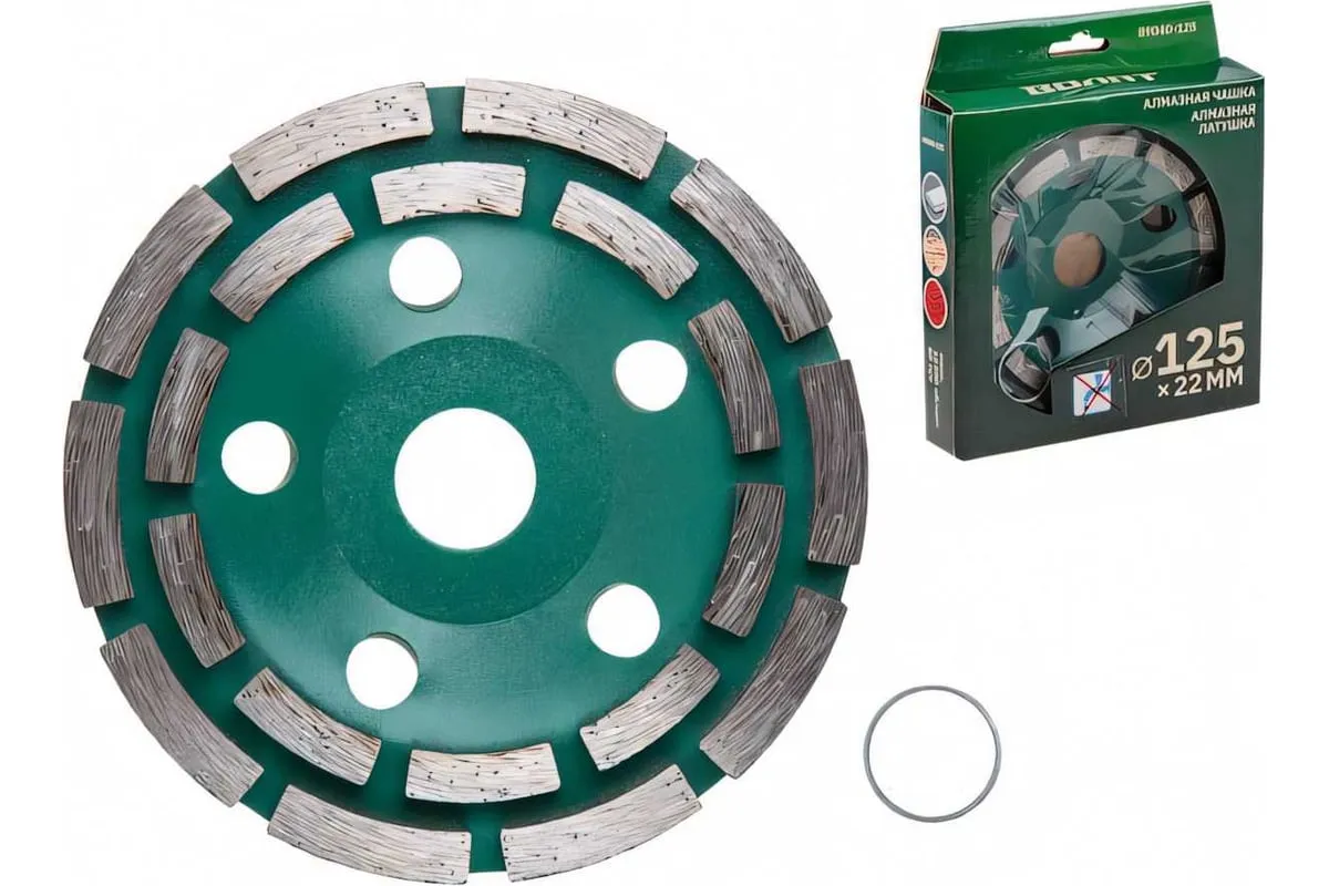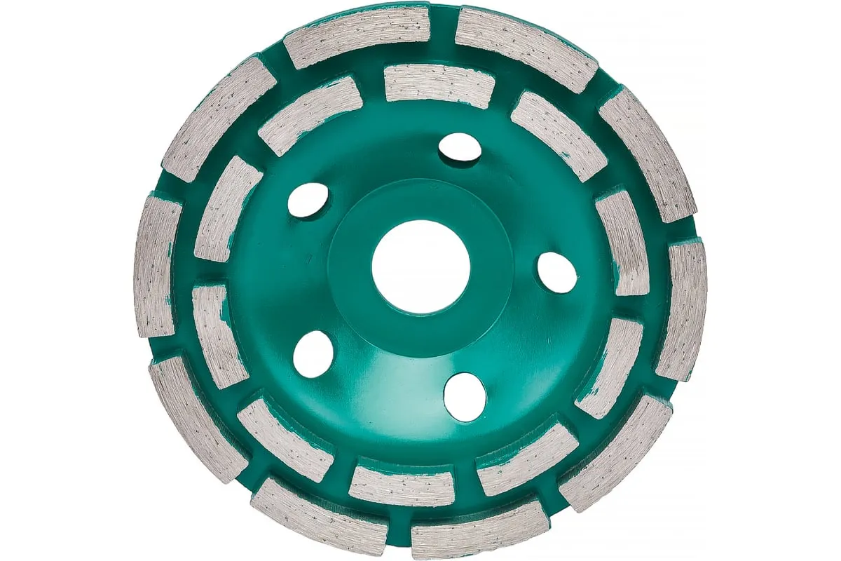 Чашка алмазная двухрядная по бетону 125 мм ВОЛАТ 89040-125 предназначена для шлифования камня, бетона, мрамора, гранита, кирпича. Рекомендуется для черновой обработки поверхностей, снятия толстого слоя материала.